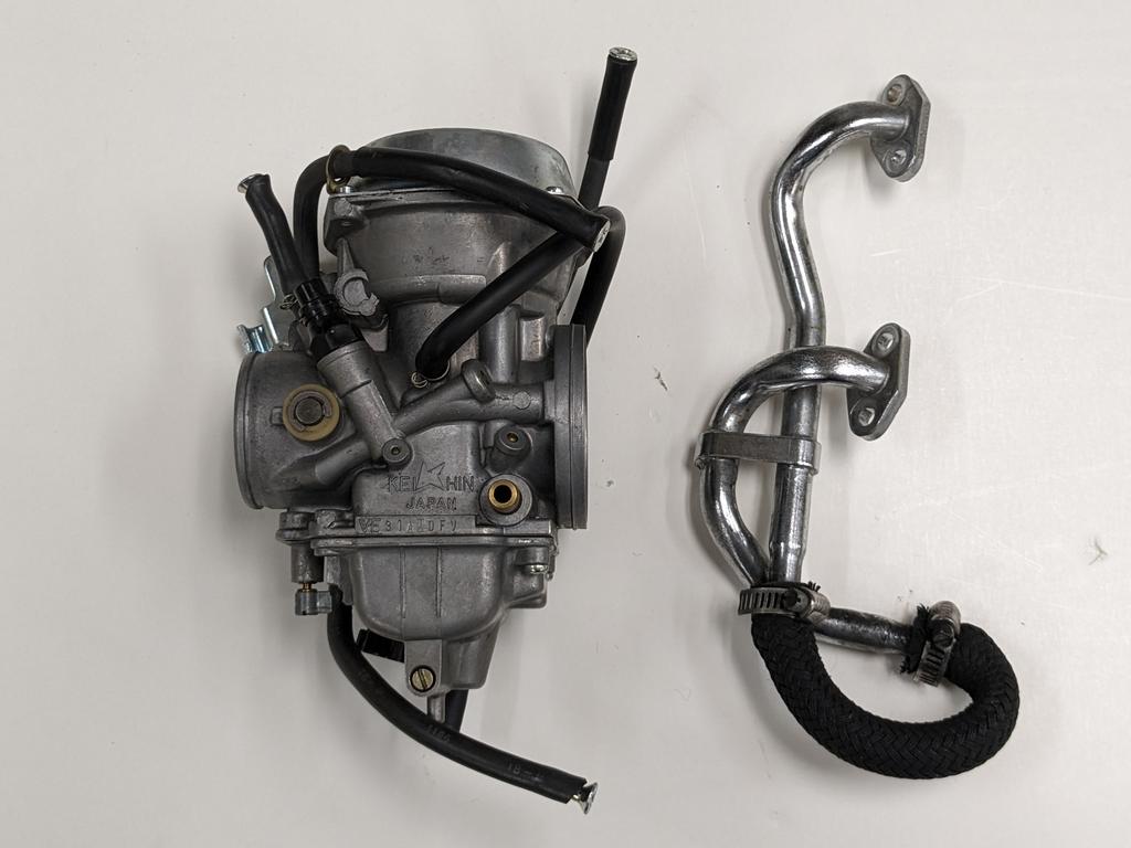 1990s Honda GB500 TT Motorcycle parts. Includes carburetor and exhaust pipes.