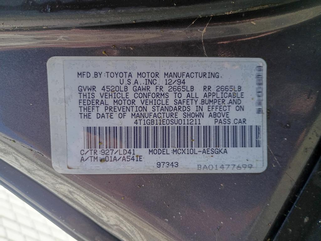 1995 Toyota Avalon 4-Door Sedan. Vin: 4t1gb11e0su011211 License: 5hdj029 Odometer Reading: 049862.