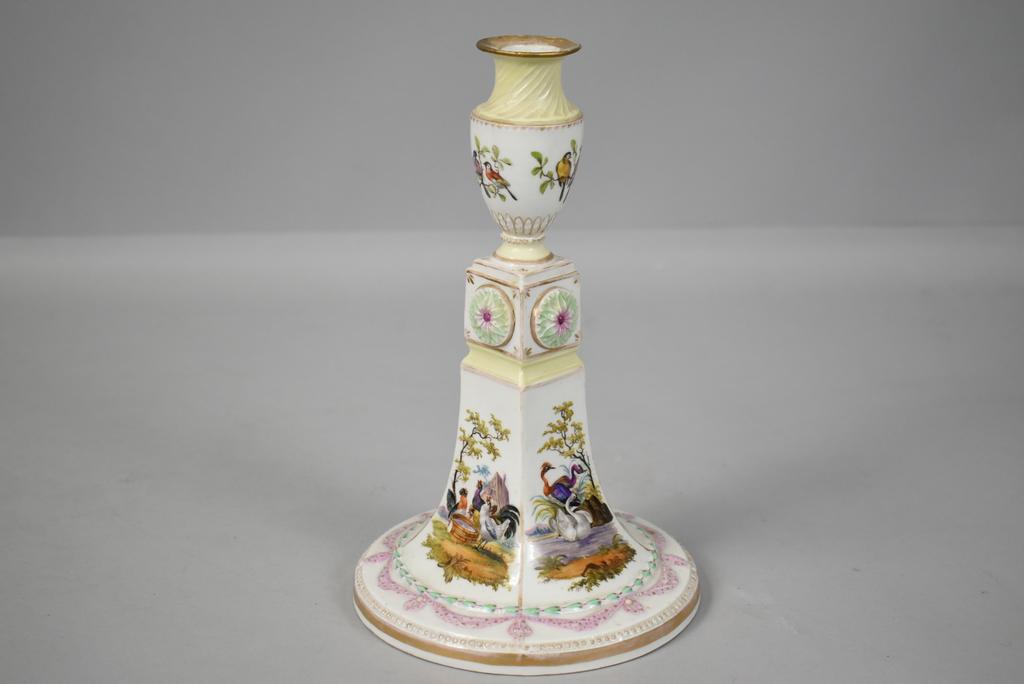 Lot 27: 19th C. Porcelain Candlestick & Pair of Urns.