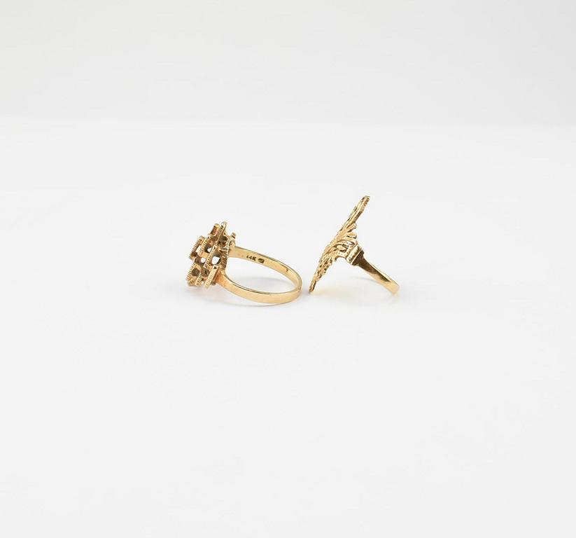 (2) 14K Yellow gold rings. Marked 14K. 5.8 grams total, sizes 5.5 & 4.75.