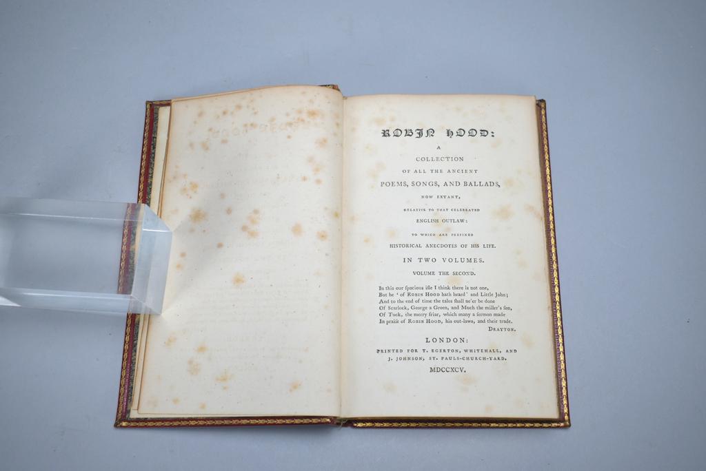 (2) 18th C. Leather bound books. Robin Hood, A Collection of all the Ancient poems, songs and ballads. With historical anecdotes of his life. London, St. Pauls-Church-Yard. MDCCXCV.