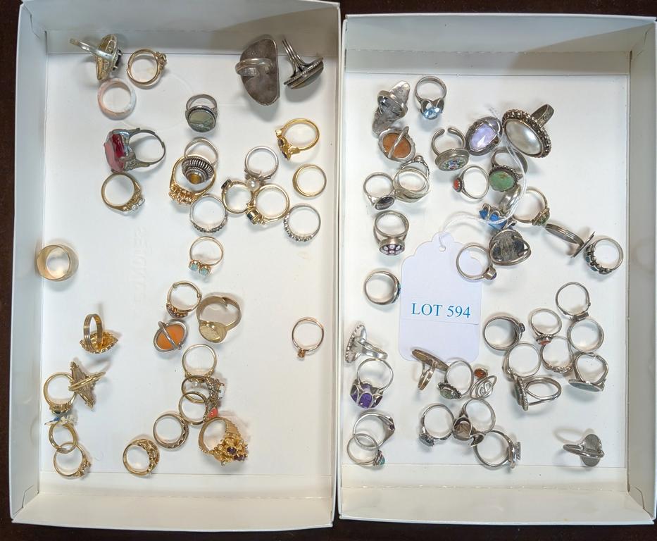 (2) Boxes Of Costume Rings Incl. Sterling, Southwestern.