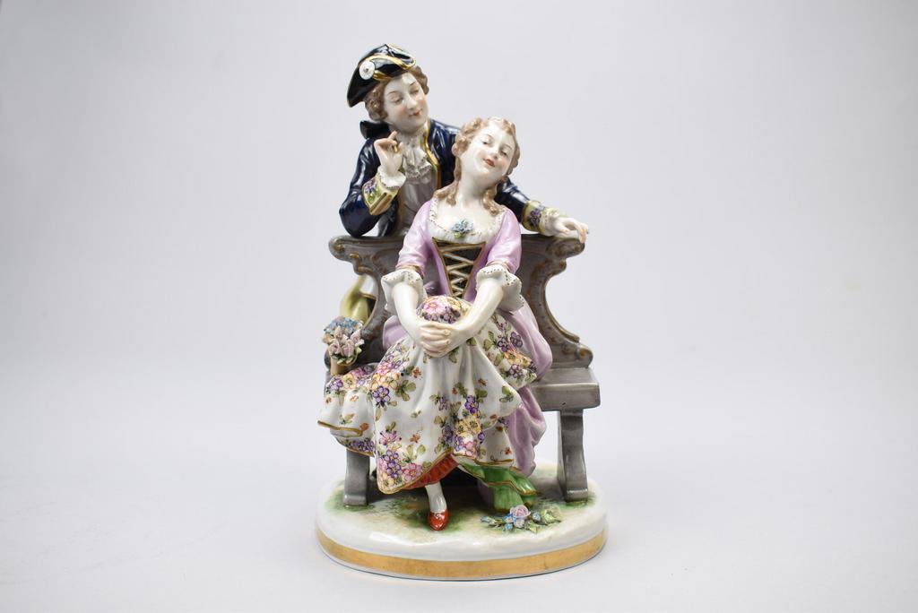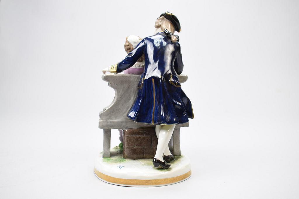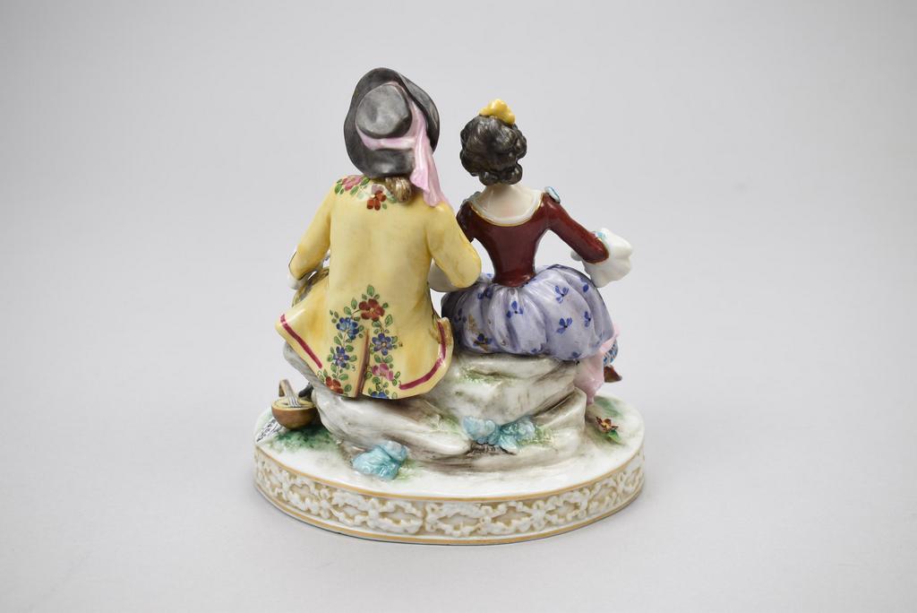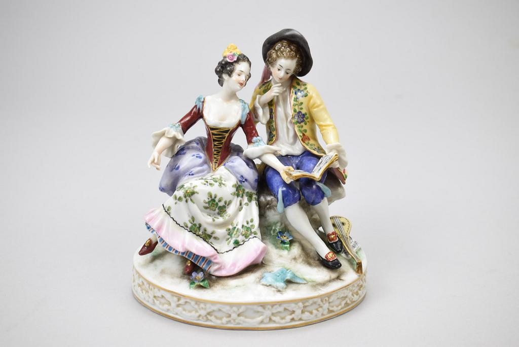 (2) Continental porcelain figural groups, Courtship. Capodimonte mark and a blue porcelain mark. 9" & 6" tall.