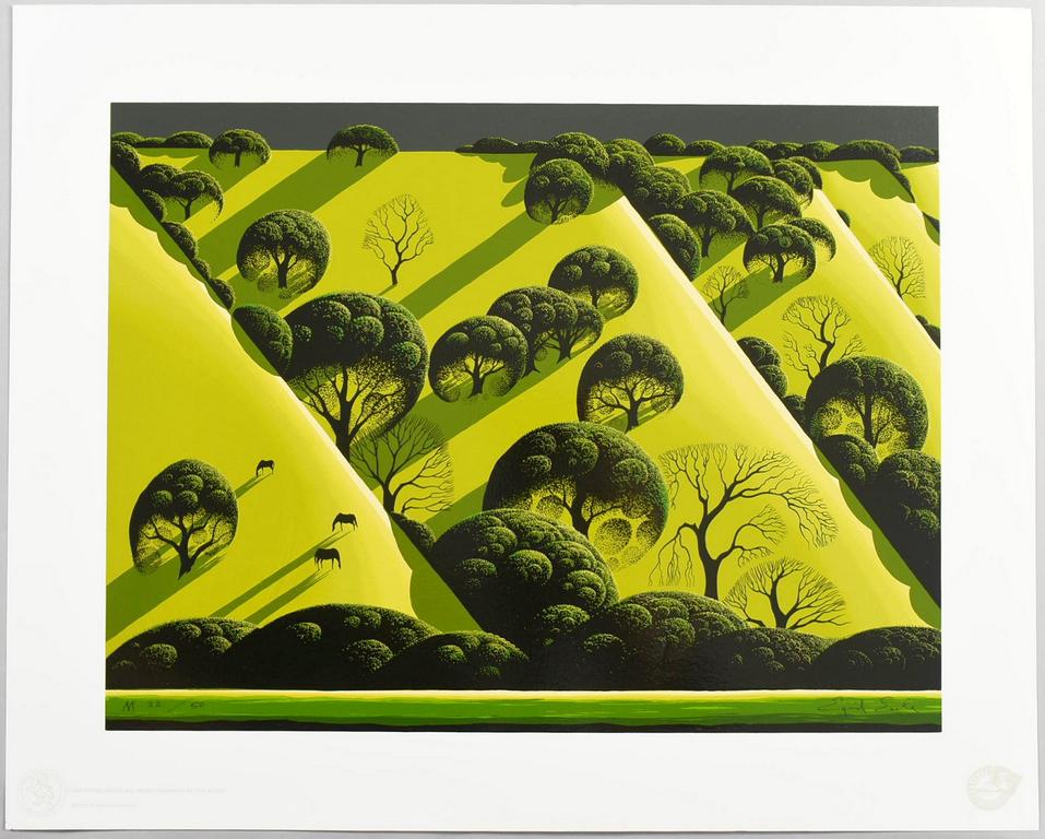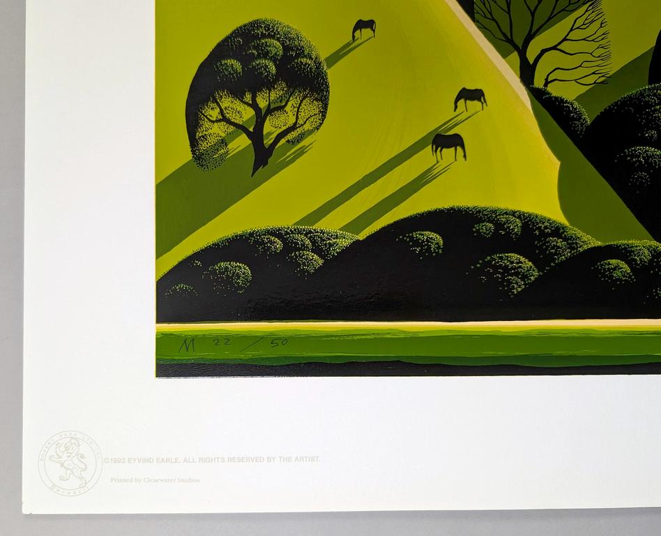 (2) Eyvind Earle Museum Proof serigraphs, Forest Symphony, Live Oak Country. Signed, numbered M 22/50. Unframed, overall: 22" x 27.25". Clearwater Studios, 1992.