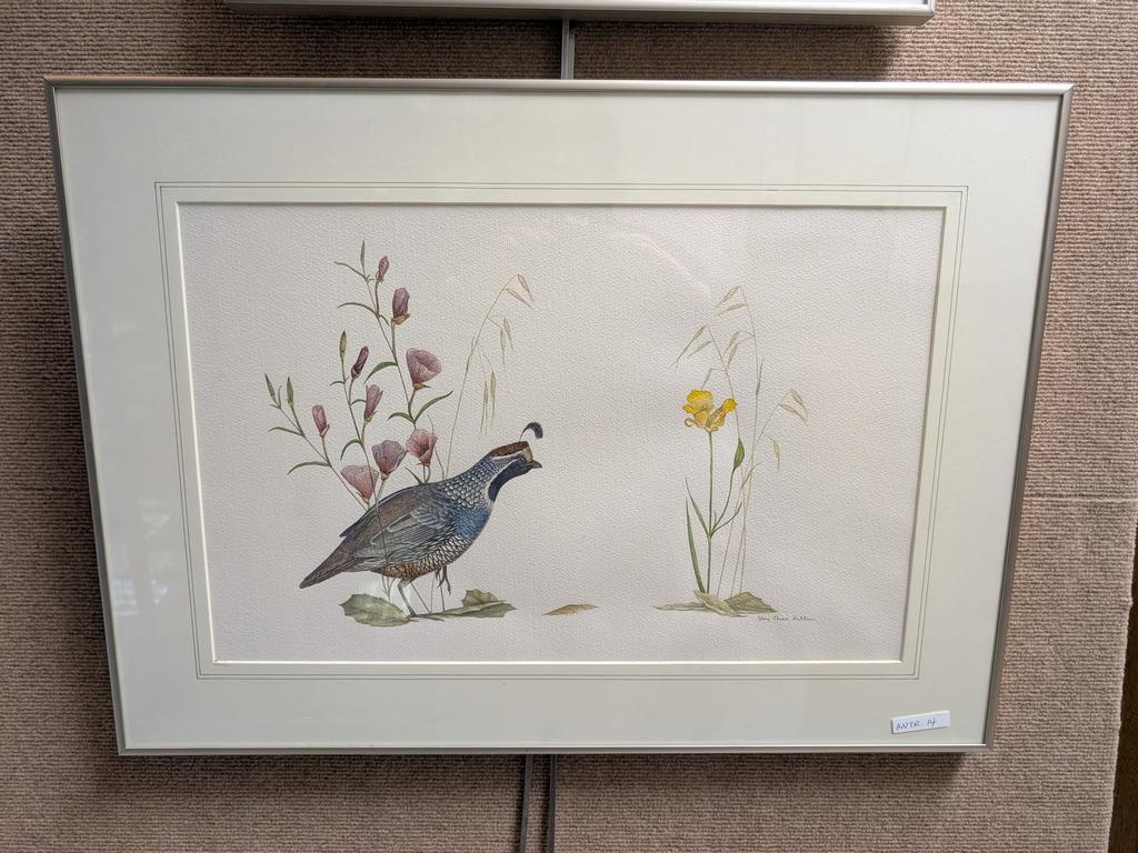 (2) Floy Zittin Watercolors, Quail; Birds & Butterfly. Signed. 13.5" X 21" & 20.5" X 13.5". Framed.
