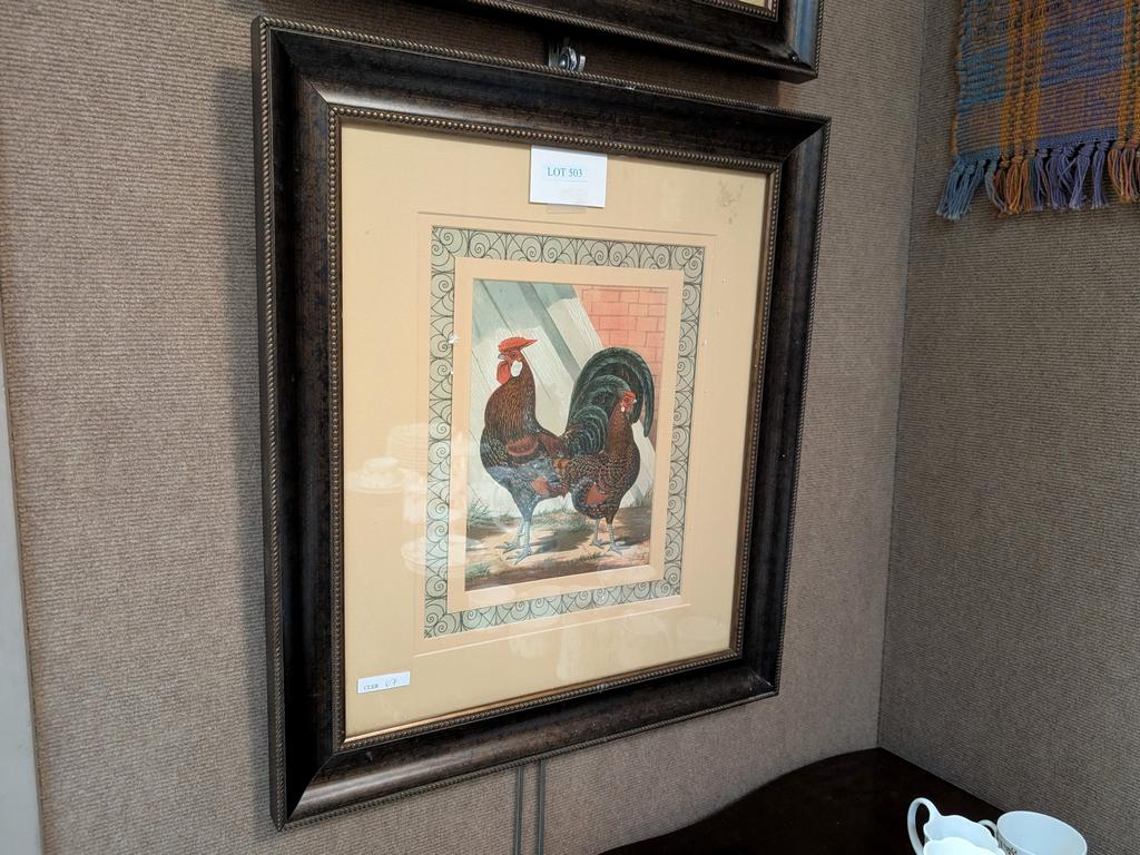 (2) Framed Rooster Prints.