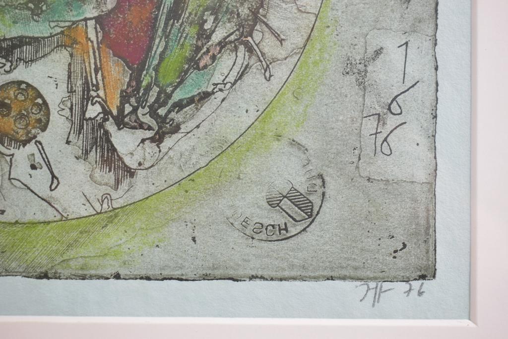 Horst Janssen (1929 - 1995), 2 Etchings with aquatint from "Svanshall" series. Signed with initials in Pencil, dated 76. Image: 6 3/4" x 9 1/2", 7" x 7 3/4". Framed. Overall: 12.5" x 16".