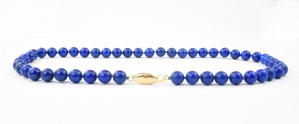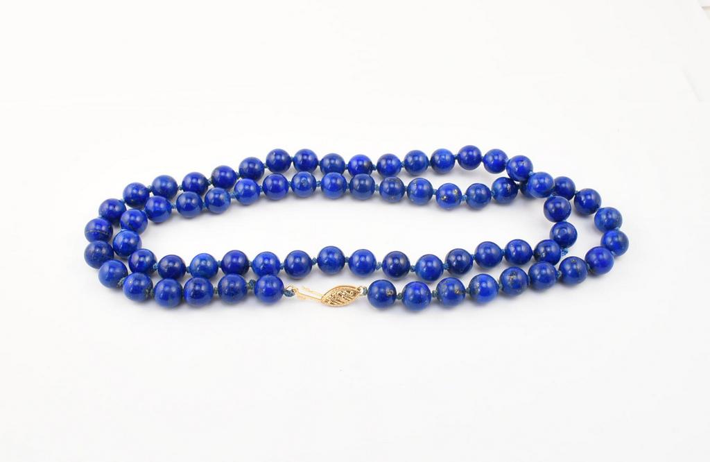 (2) Lapis Lazuli beaded necklaces, one with 14K clasp. 24" & 17" long.