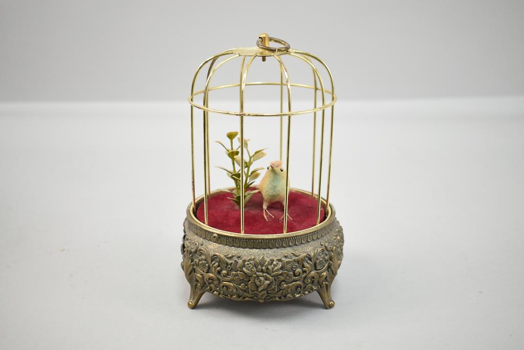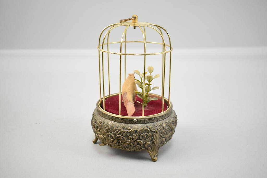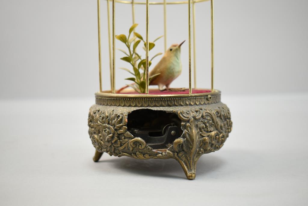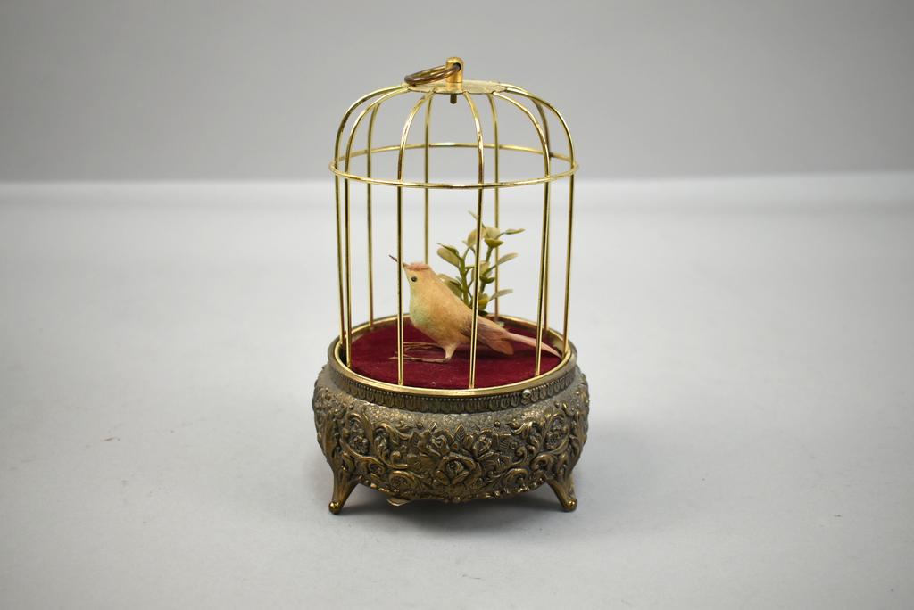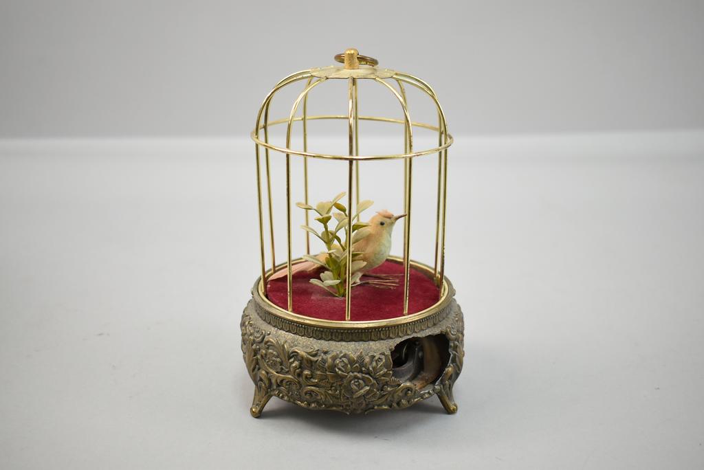 Lot 83: (2) Vintage Bird Cage Music Boxes & Bird Cage Clock.