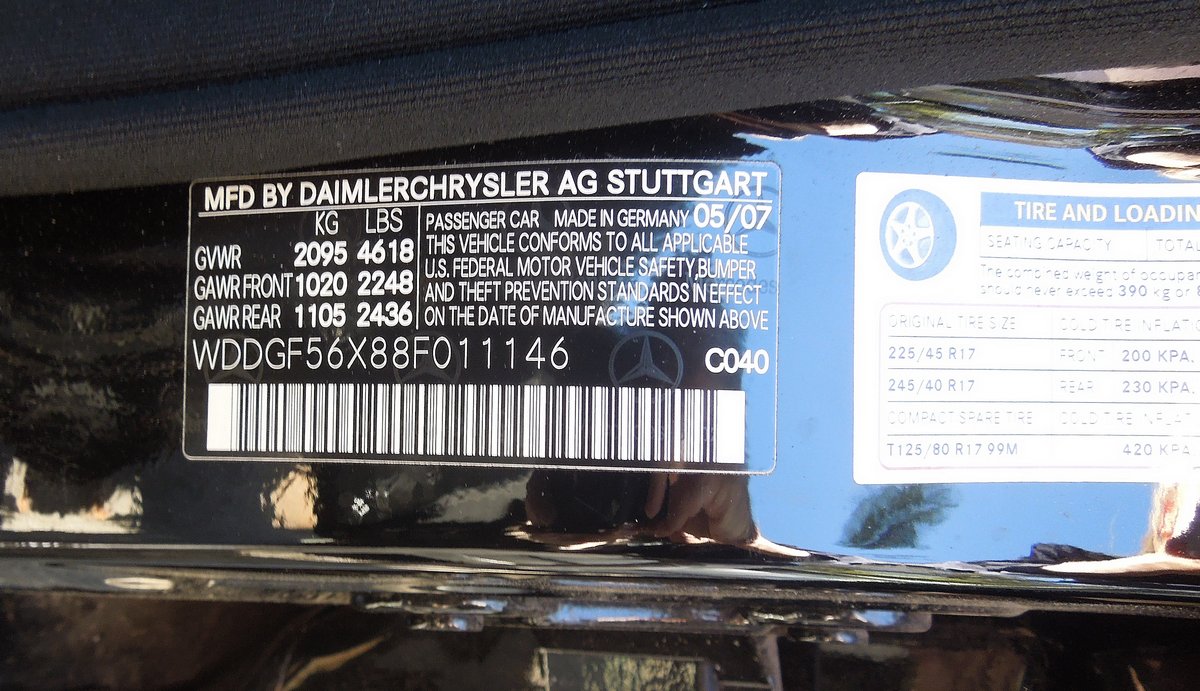 2008 Mercedes-Benz 4-Door Sport Sedan. VIN: WDDGF56X88F011146. License: MBC1668 (California). Odometer reading: 46997.