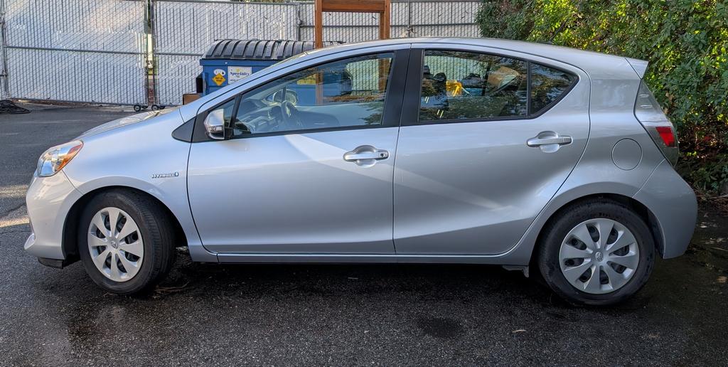 2013 Toyota Prius C Hybrid 4-door Hatchback. VIN: JTDKDTB36D1033199, License: 6XSR899, Odometer reading: 114937. (1.5L L4 DOHC 16V Hybrid Engine).