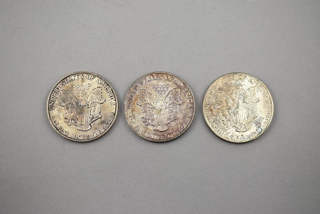 (3) American Eagle Silver Dollars. 1987, 1991, 1992.