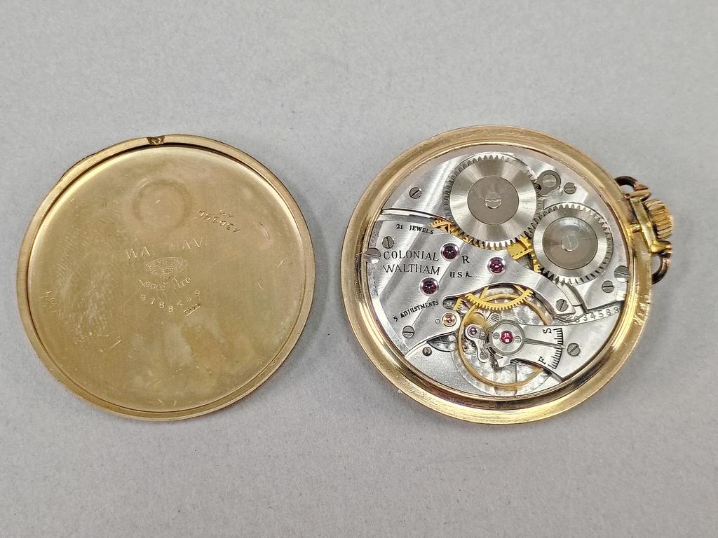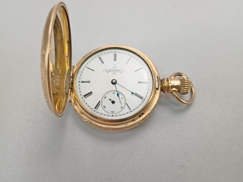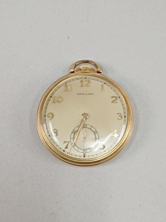 (3) Gold plated pocket watches. Hamilton, Waltham and a Elgin hunter case.