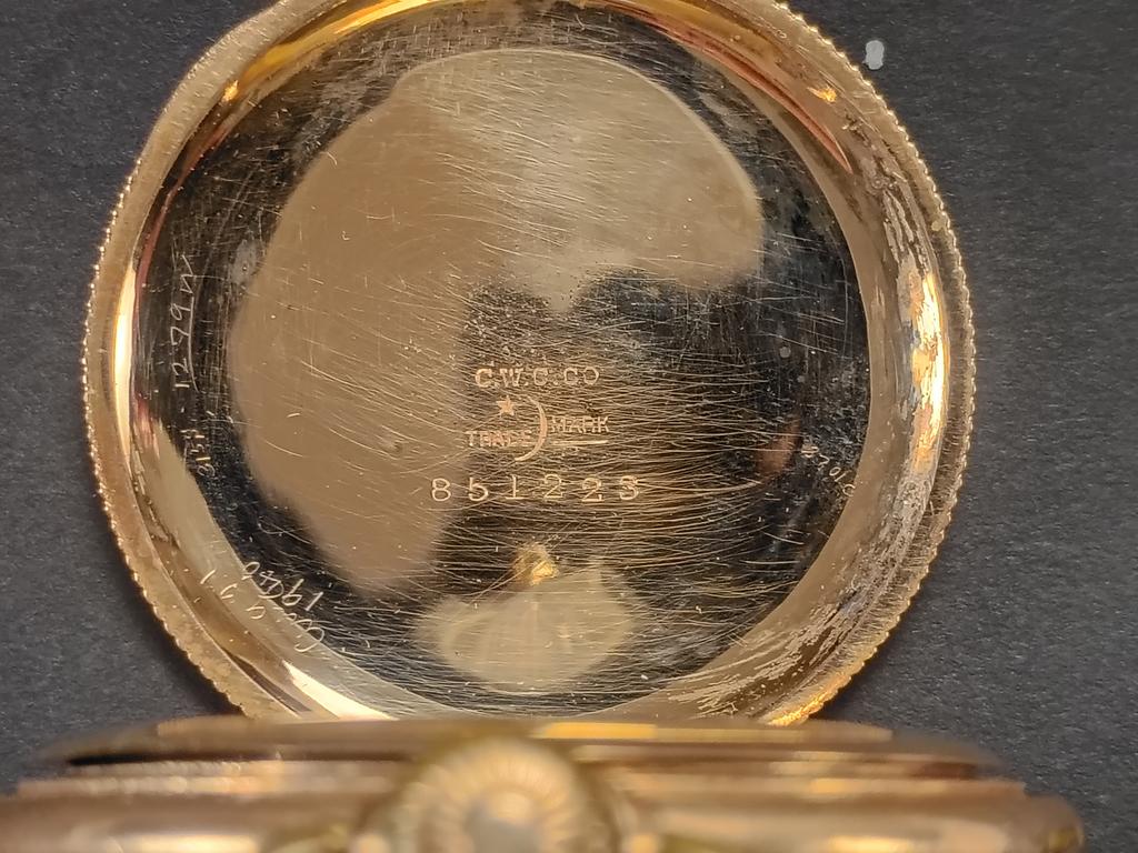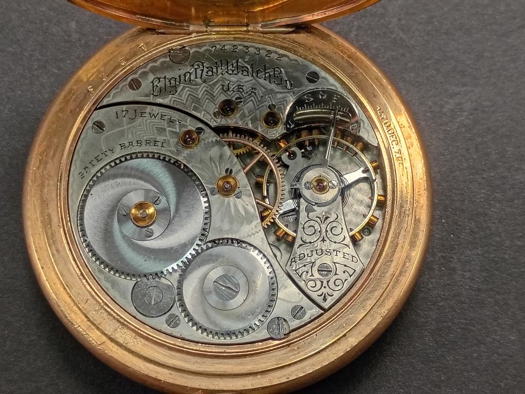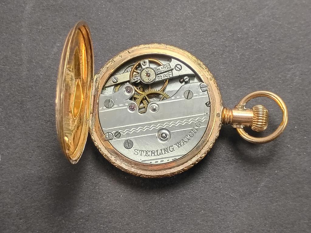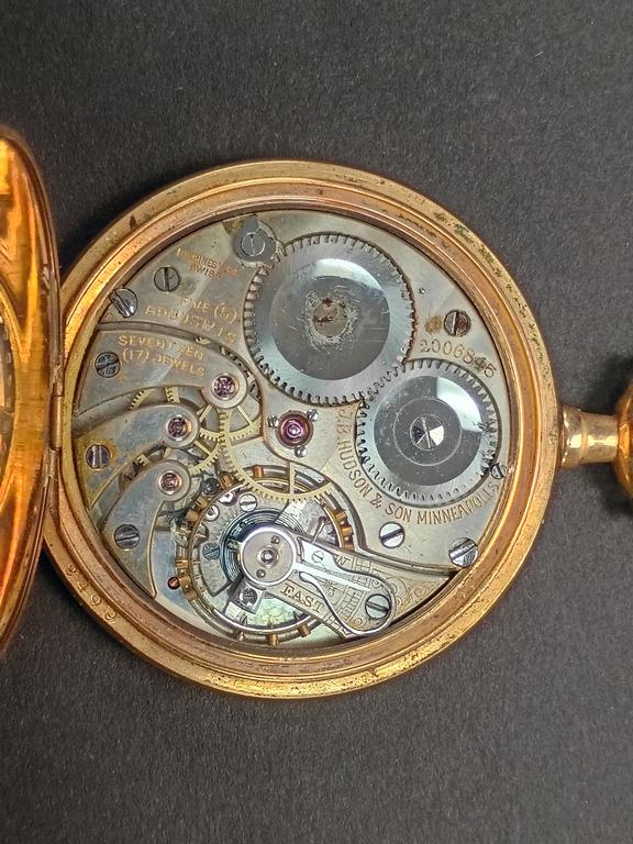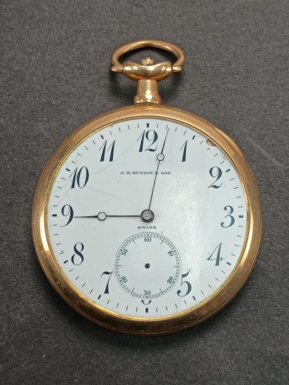 (3) Gold plated pocket watches. Elgin, J. B. Hudson & Son hunter case and a "Sterling" watch.