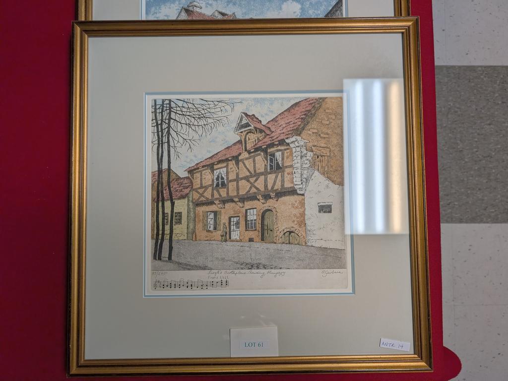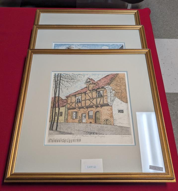 (3) Peter Garbera etchings, signed. The Bach House #8/495, Beethoven's House #94/295, Lizst Birthplace #83/295. Framed.
