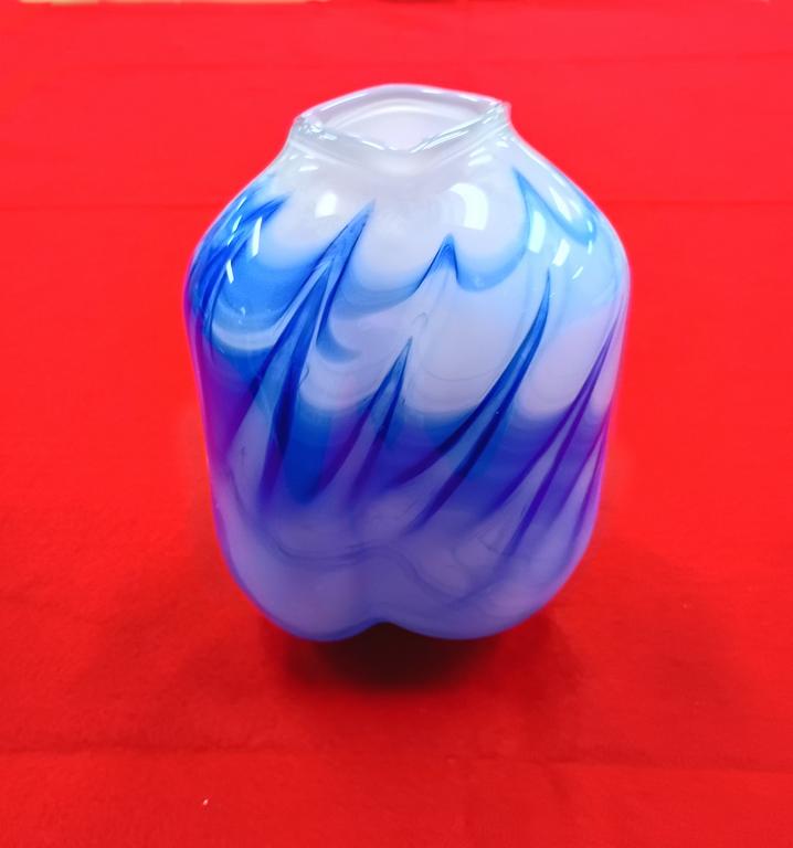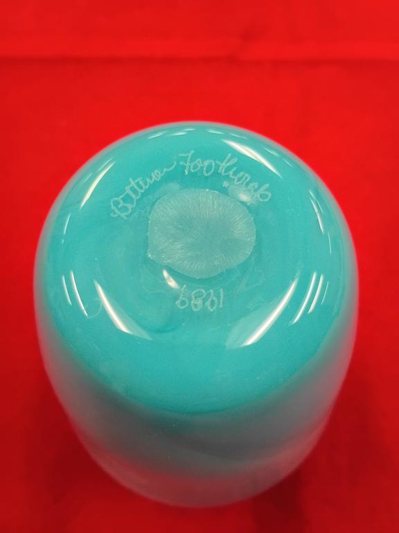 (4) Art glass vases incl. Vas Vitruem signed vase. Various hues of blue. Tallest: 9 3/4".