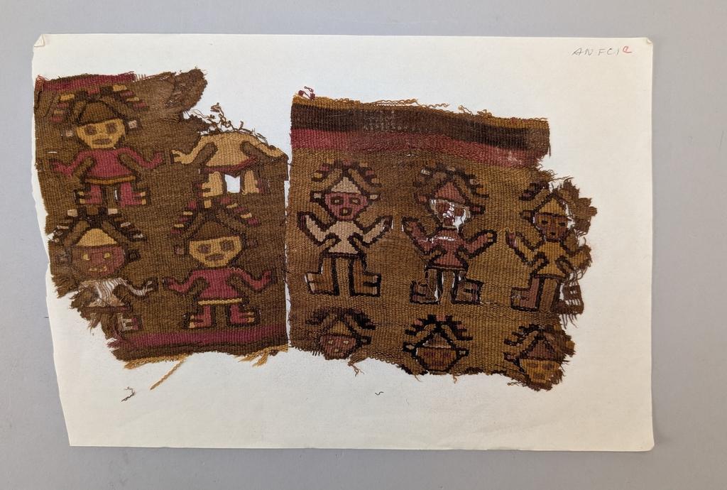 (7) Pre-Columbian rug fragments. Approx. 10" x 8" to 6" x 5.5".
