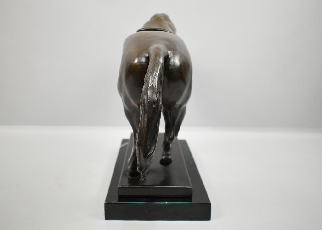 After Antoine-Louise Barye, bronze sculpture of a trotting horse. On black marble plinth. 20" W, 7" D, 13.5' H.