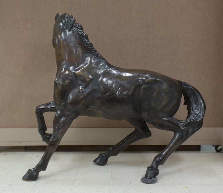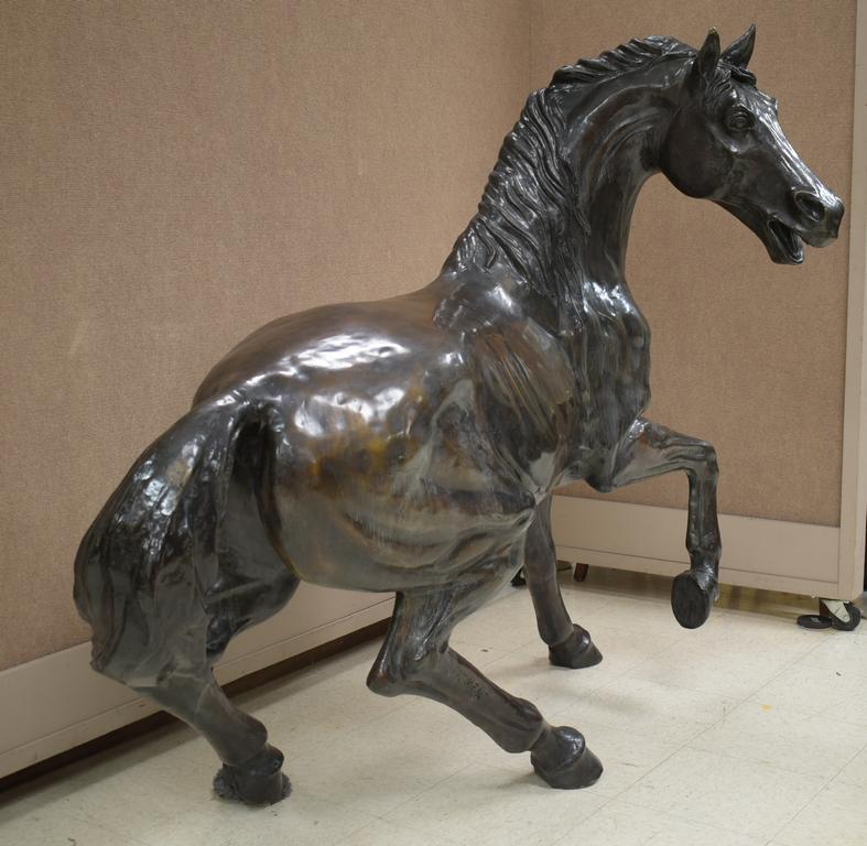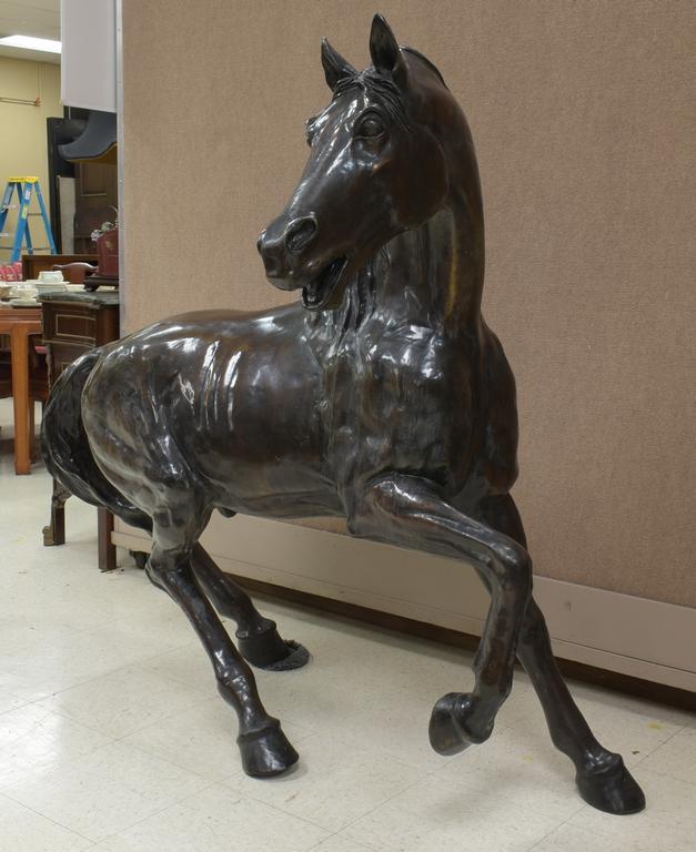 Lot 121: After Pierre Jules Mene, Large Bronze Horse Sculpture, Stallion. Marked J.P. Mene #13/50 (13/500). 60" W, 56.5" H.
