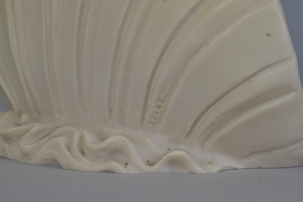 After Santini, alabaster statue, Birth of Venus. Marked A. Santini, Italy. 22" H, 8.5" W, 5.5" D. Very small losses on the back.