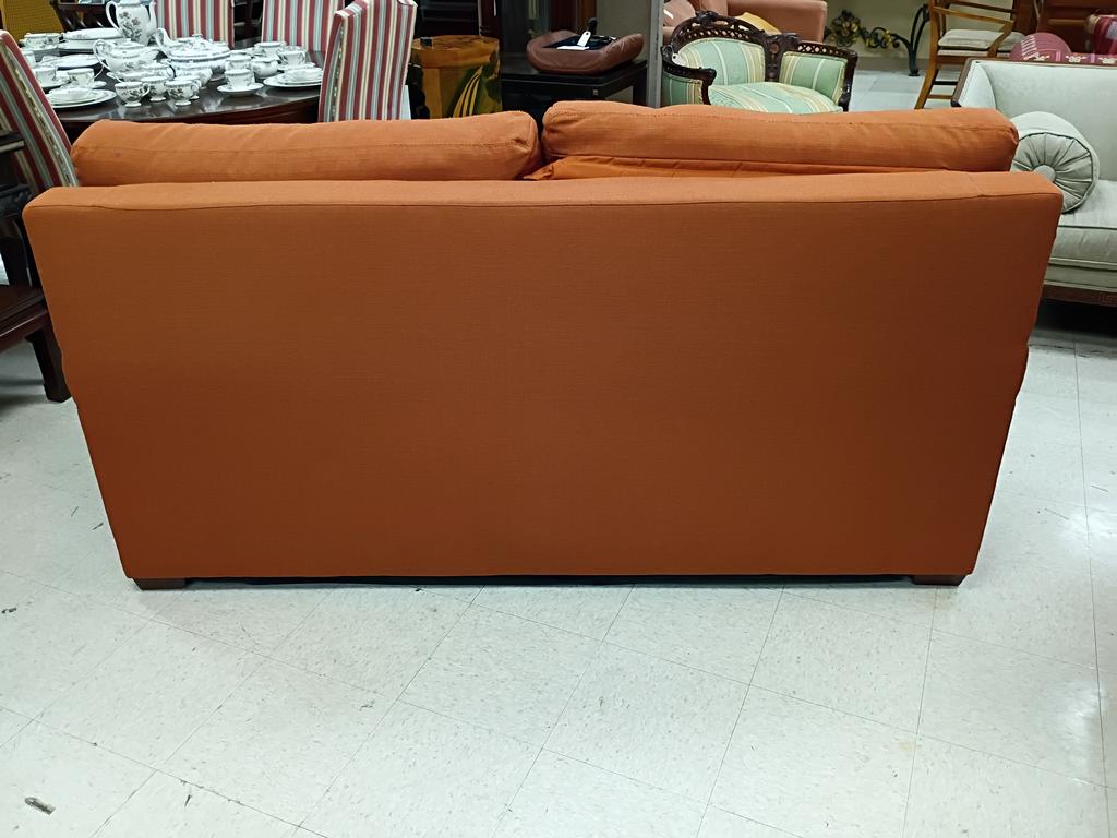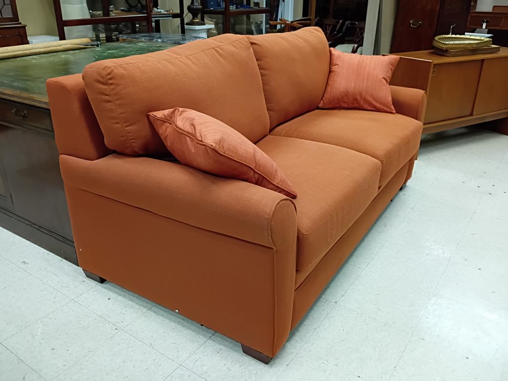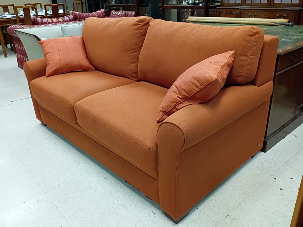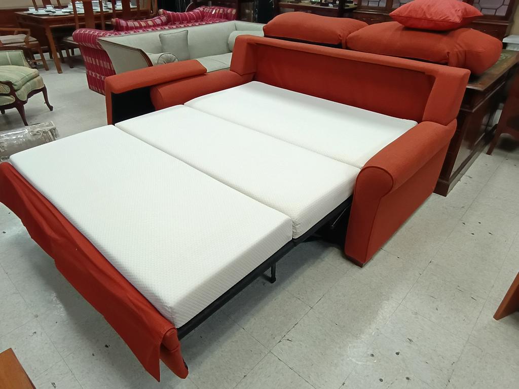 American leather 2-seat sleeper sofa. Rust orange fabric upholstery, Tiffany 24/7 Convertible mechanism. 76" W, 40" D, 38" H.