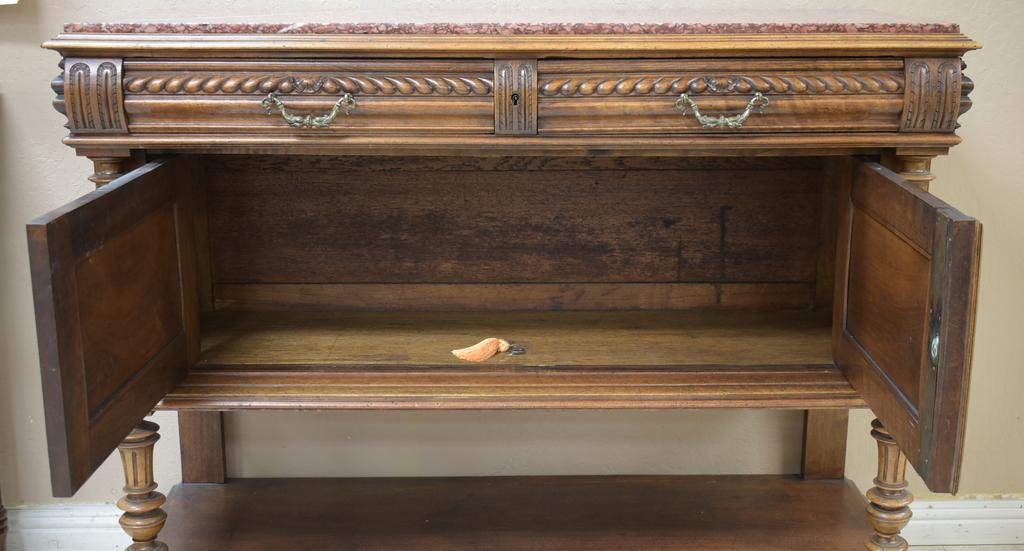 Lot 44: Antique French Carved Walnut Buffet with Marble Top.