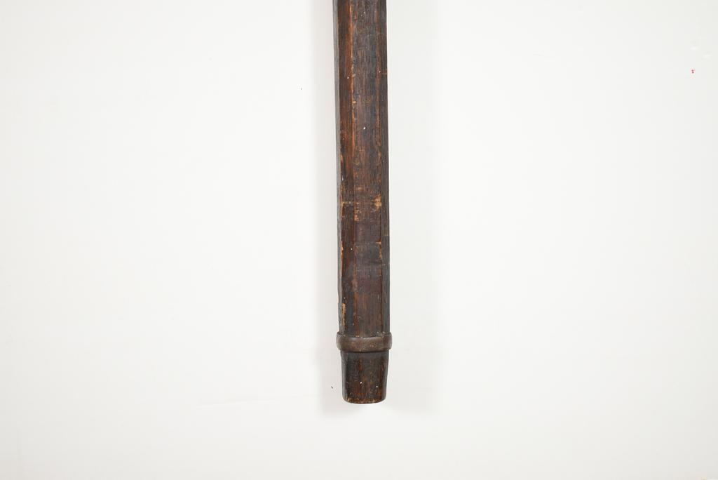 Antique German poleaxe. Hand wrought steel crescent blade with spike and stepped hammer. Wooden handle. Overall: 53 1/2" long.