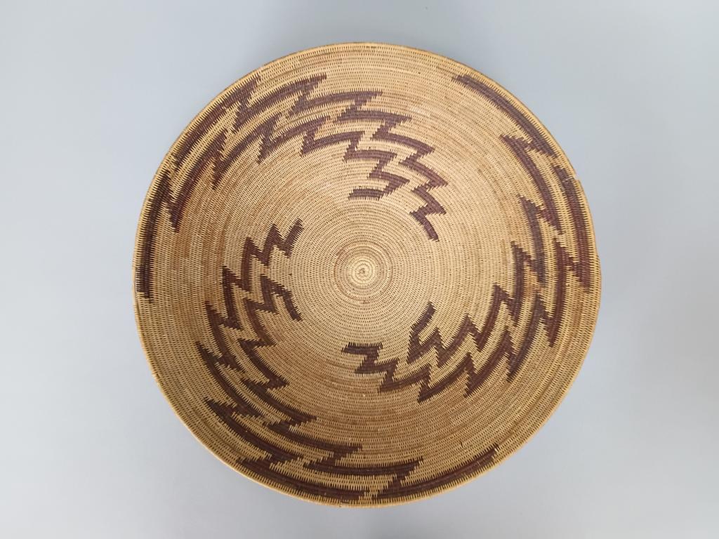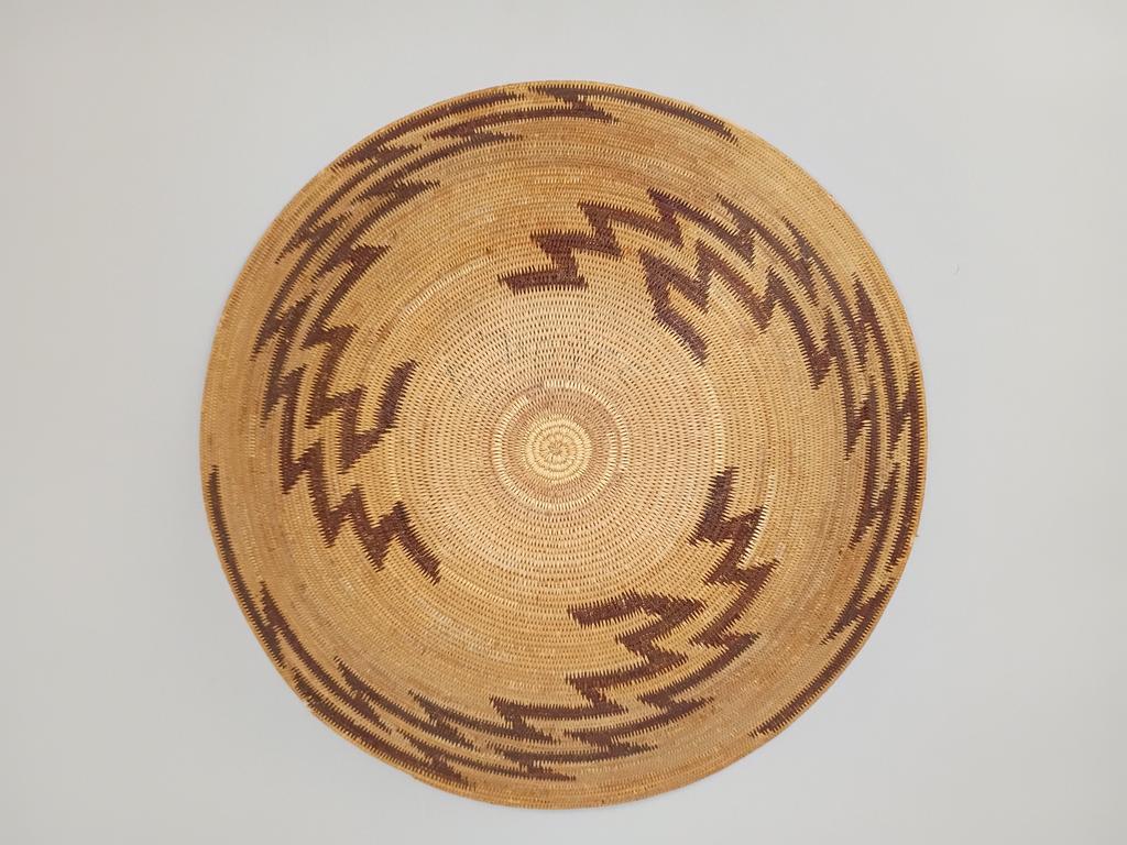 Apache woven lightning basket, 20th C. 16.5" diameter, 4" tall.