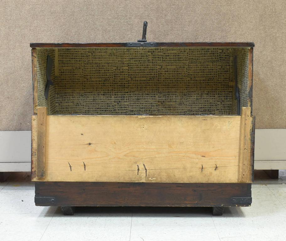 Asian tansu style drop front storage chest. 31.5" x 16" x 26".