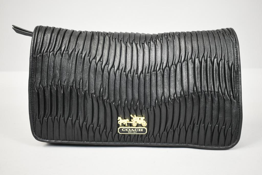 Black leather bag and purse. Marked Coach. Note: DGW cannot guarantee the authenticity of this lot.