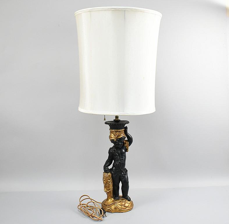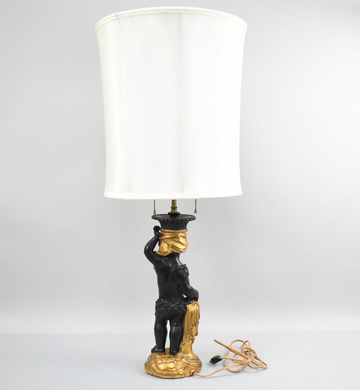 Lot 71: Borghese Black Painted Italian Cherub Lamp.