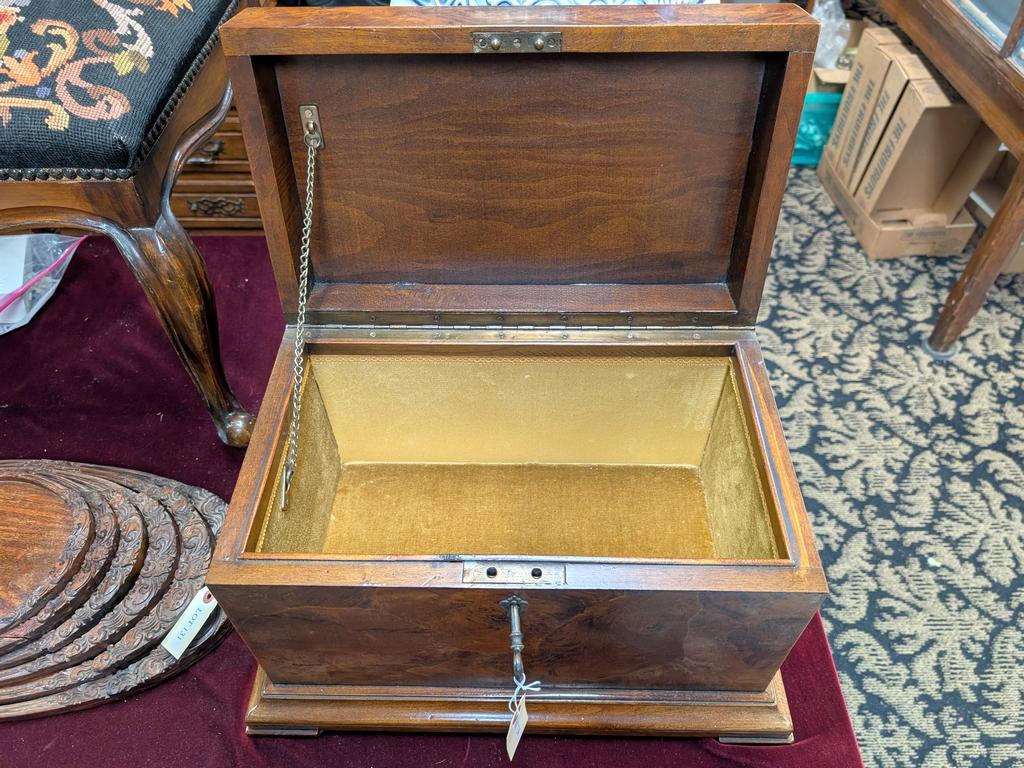 Burl Walnut Lidded Box With Felt Lining. On An Attached Fitted Stand. 17.5" X 10.5" X 12".