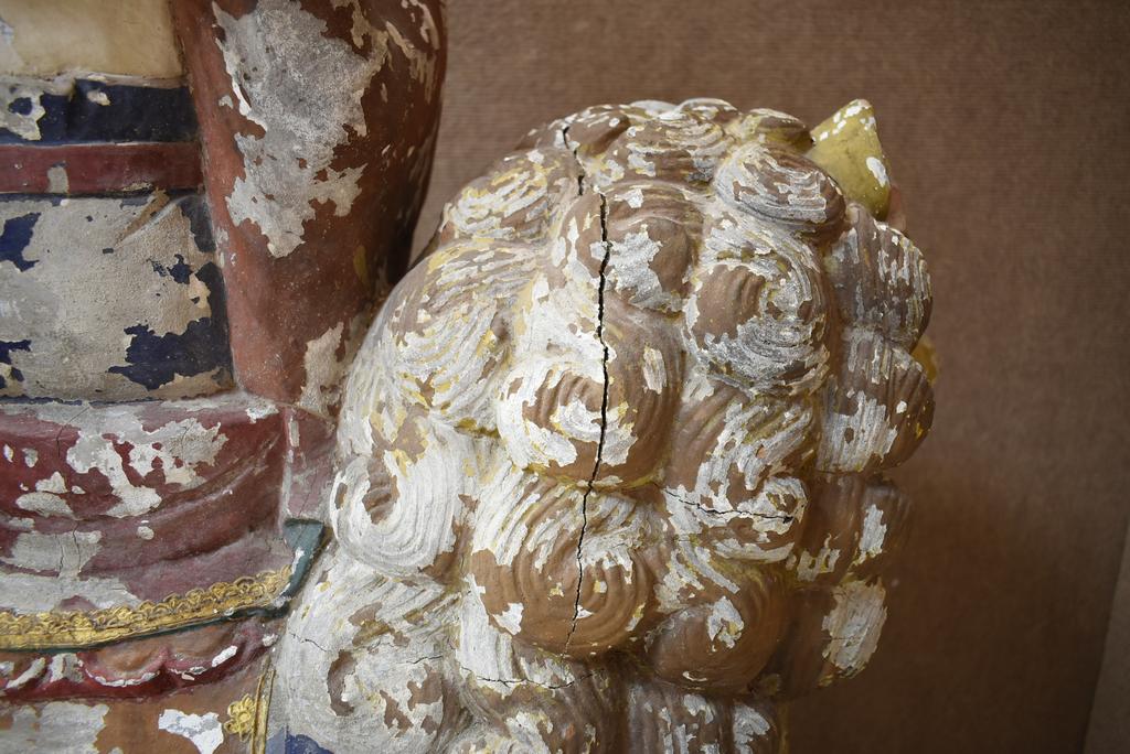 Lot 15: Carved Wood & Gesso Bodhisattva Manjushri Figure.