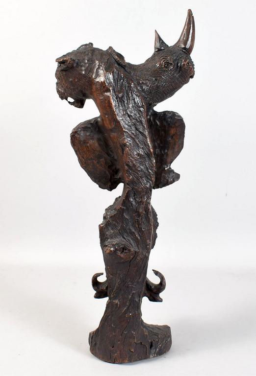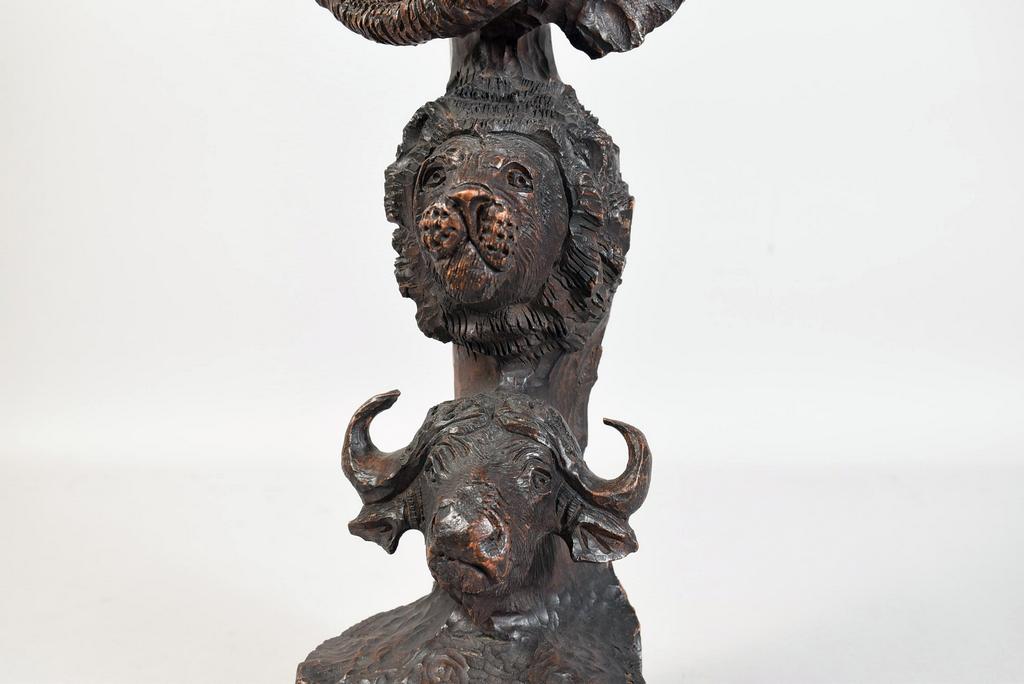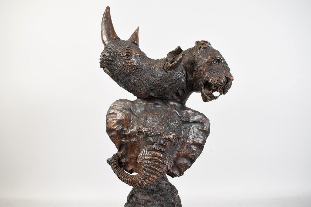 Carved Wood Sculpture Of Stacked Animal Heads, African Wild Life. 20" Tall.