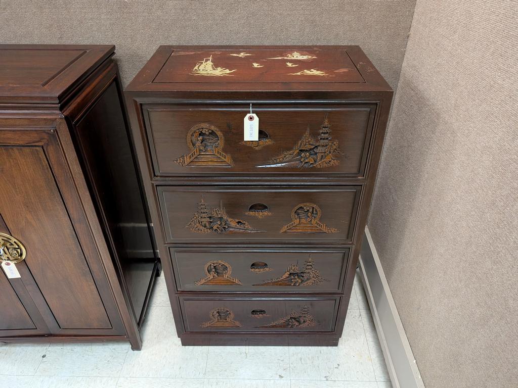 Lot 361: Chinese Carved 4-Drawer Chest.