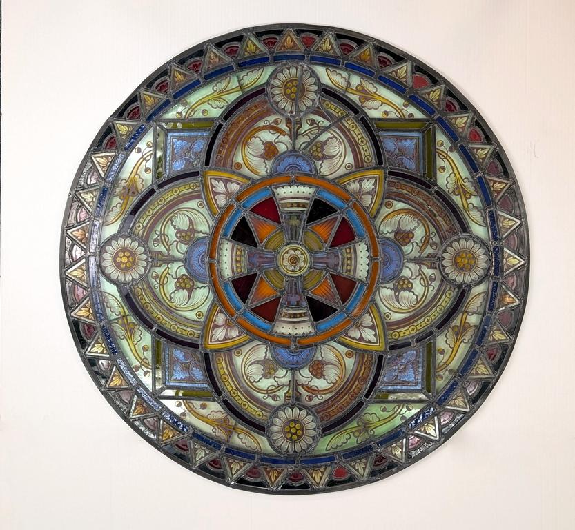 Circular Stained Glass Panel, 39 1/4" Diameter.