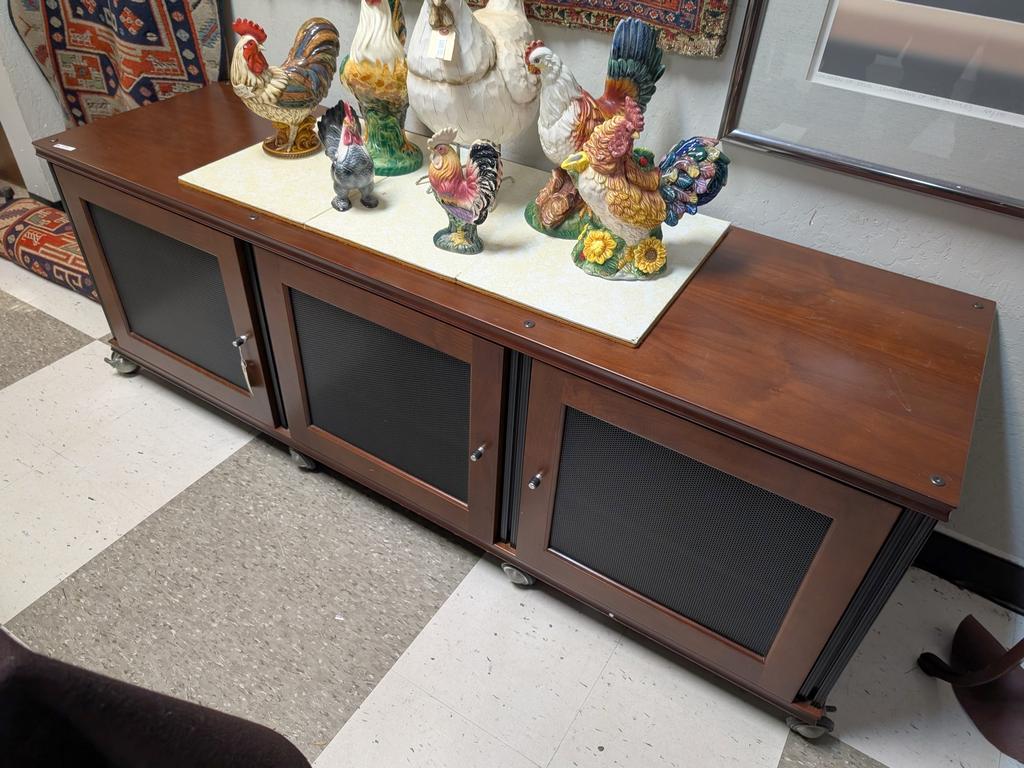 Lot 122: Contemporary 3-Door Low Cabinet On Casters.