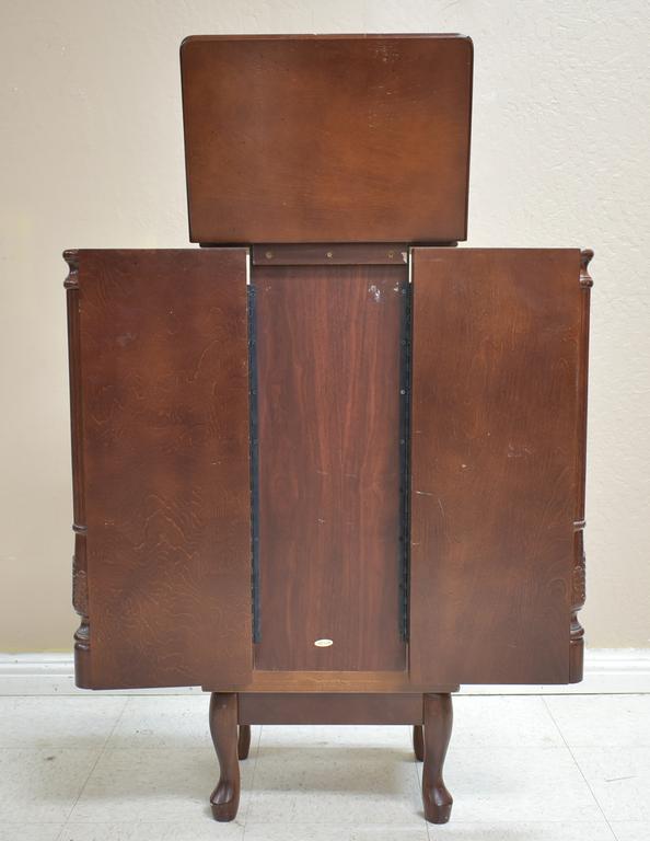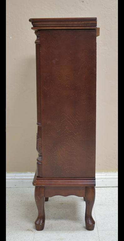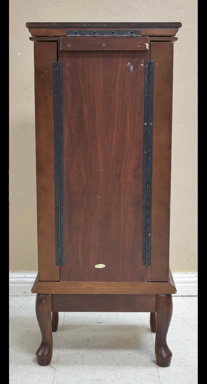 Contemporary mahogany lift top, 6-drawer jewelry chest. 17" x 12" x 39 1/2".