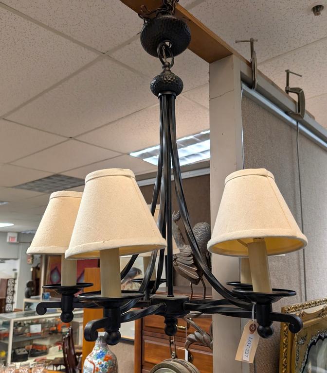 Contemporary Wrought Iron Style 5-Light Ceiling Fixture. 22" X 25".