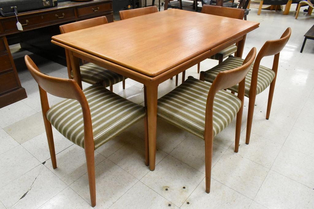 Lot 46: Danish Teak Draw Leaf Table and 6 Chairs.