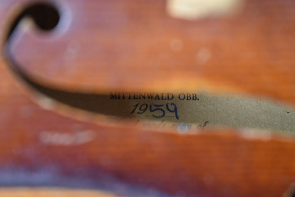 E.R. Pfretzschner full size violin. Hand made copy of Stradivarius. Made in Western Germany, dated 1959. 23 1/4 inches long.