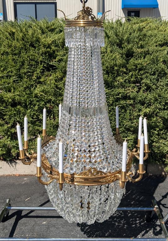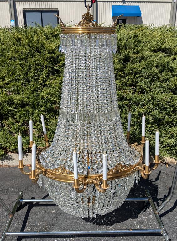 Lot 74: Empire Style Drop Crystal 12-Light Chandelier.