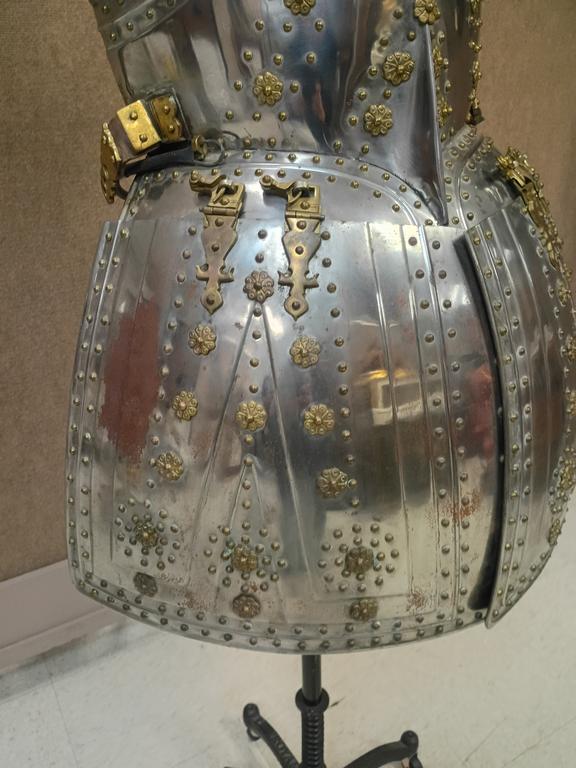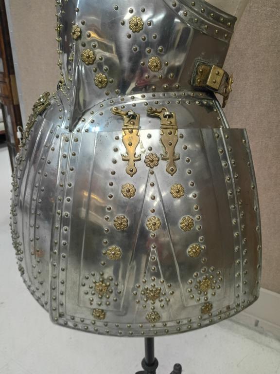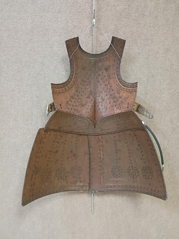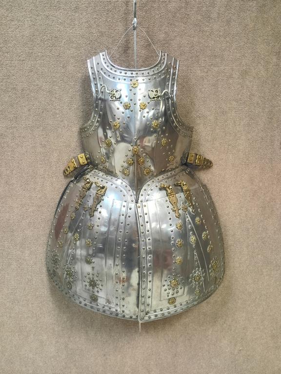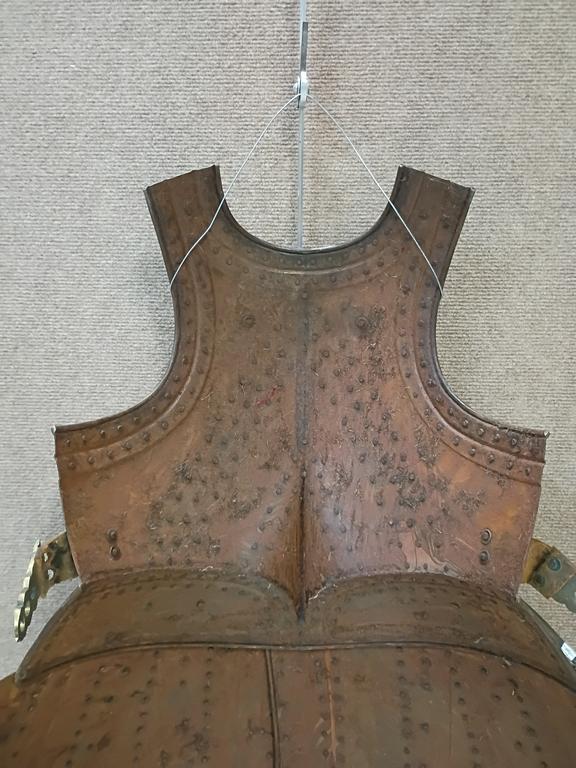 A well crafted English Civil War style pikeman armor chest plate with skirt and associated helmet.