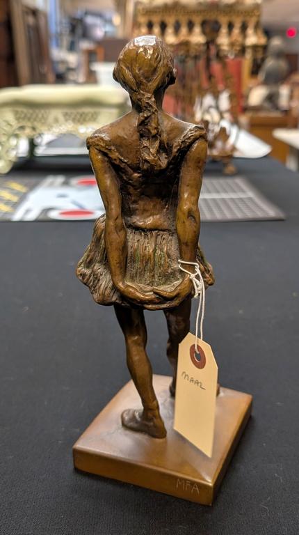 Faux Bronze Figure Of A Girl With Hands Clasped Behind. Stamped Mpa. 10" Tall.