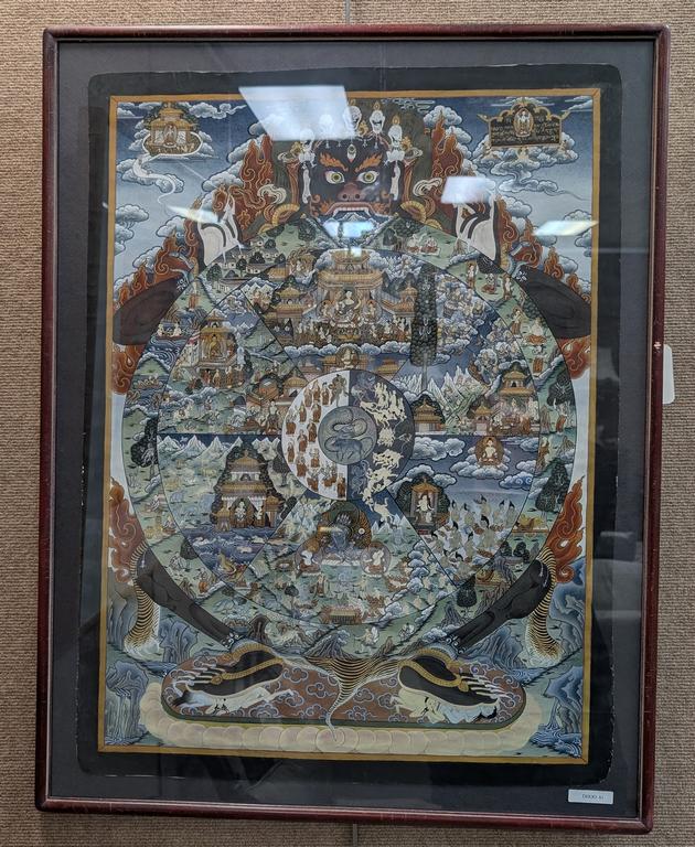 Framed Tibetan Thangka Painting, The Wheel Of Life. 29" X 21.5". Framed.