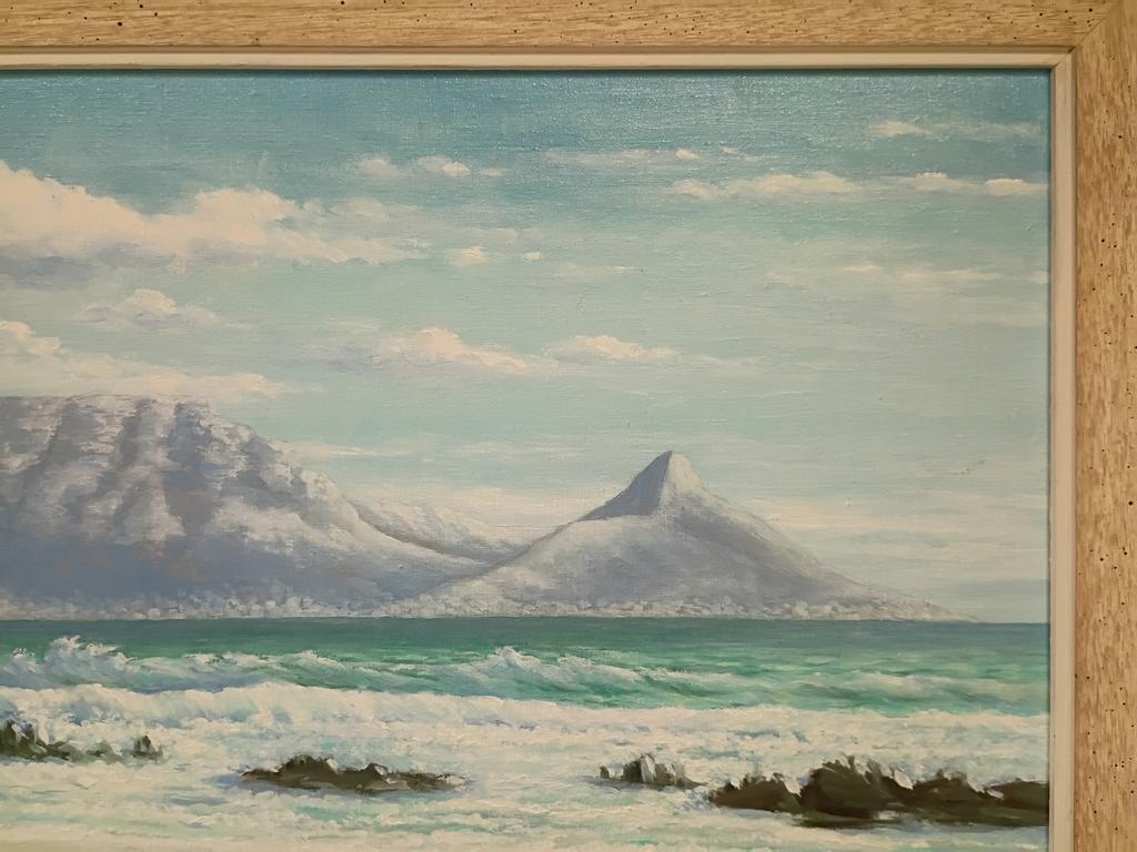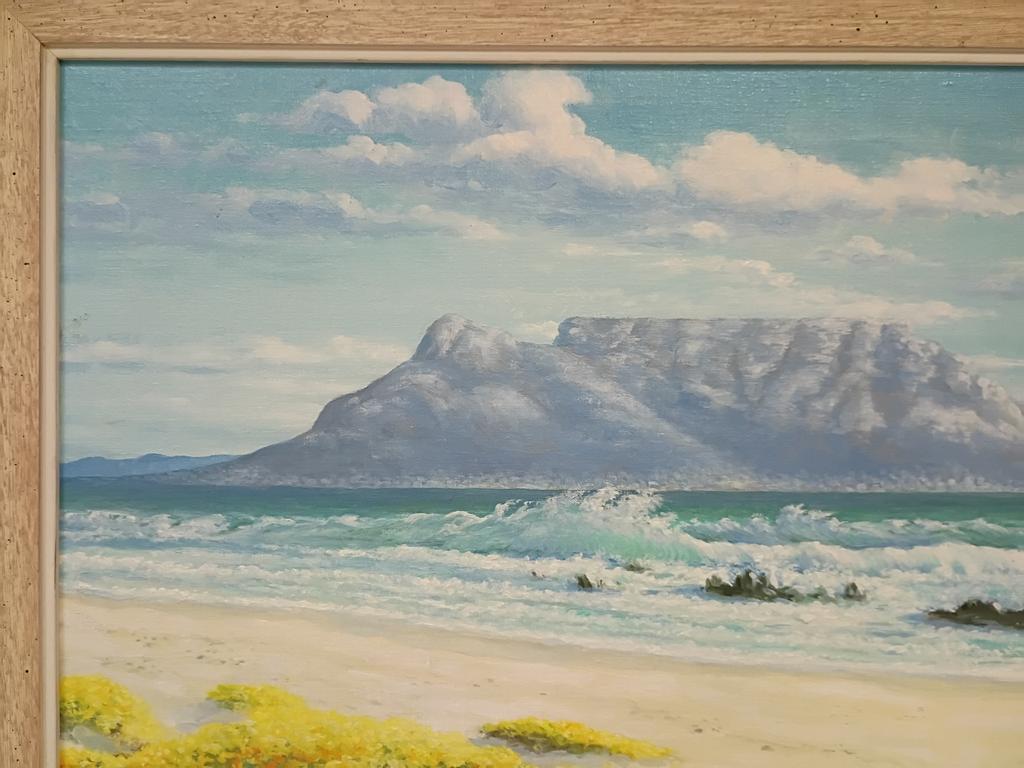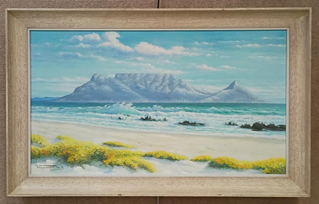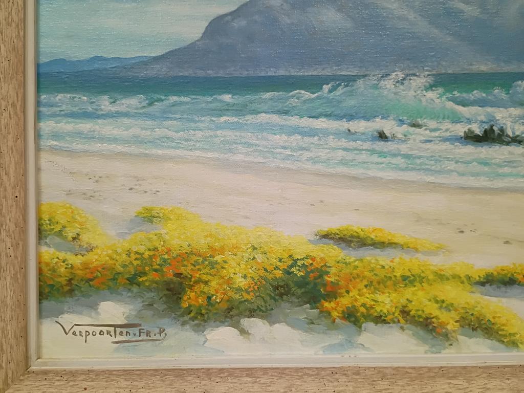 Franz Verpooten Oil On Board, Seascape With View Of Table Mountain. Signed Lower Left. 16.5" X 29". Framed. O/A: 21" X 33".
