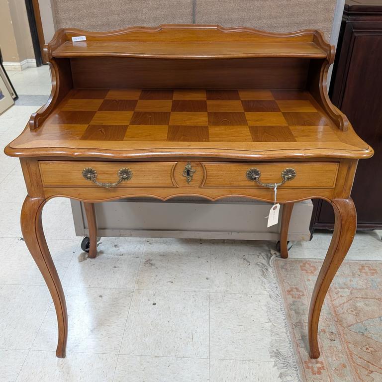 French Provincial Style Single Drawer Writing Desk With Checkerboard Surface.