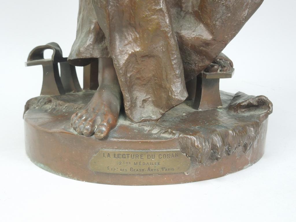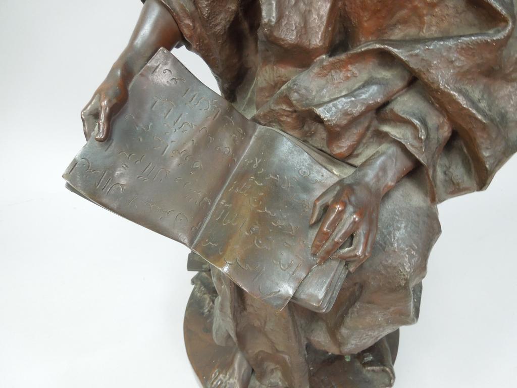 Gaston Vuevenot Leroux (1854 1942), bronze sculpture, seated man reading a book with Arabic text. Impressed signature G. Leroux. 25 3/4" tall.