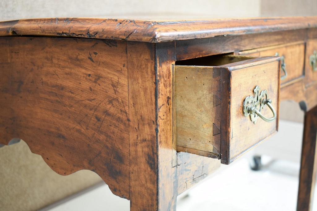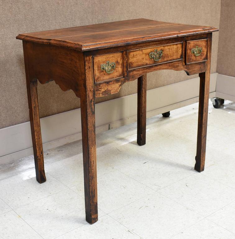 George III mahogany dressing table with 3 drawers and square legs. 31" W, 21" D, 30" H.