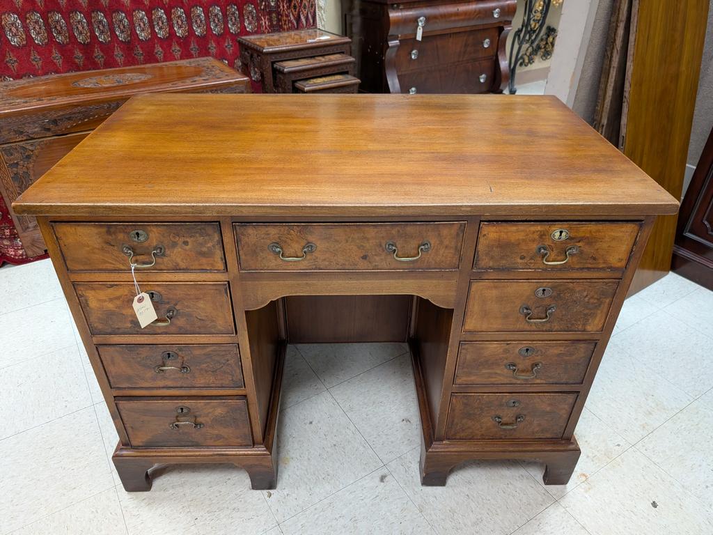 George III Mahogany Knee Hole Desk. Single Center Drawer, 4 Drawers On Each Side. 43 1/2" X 23 3/4" X 31".